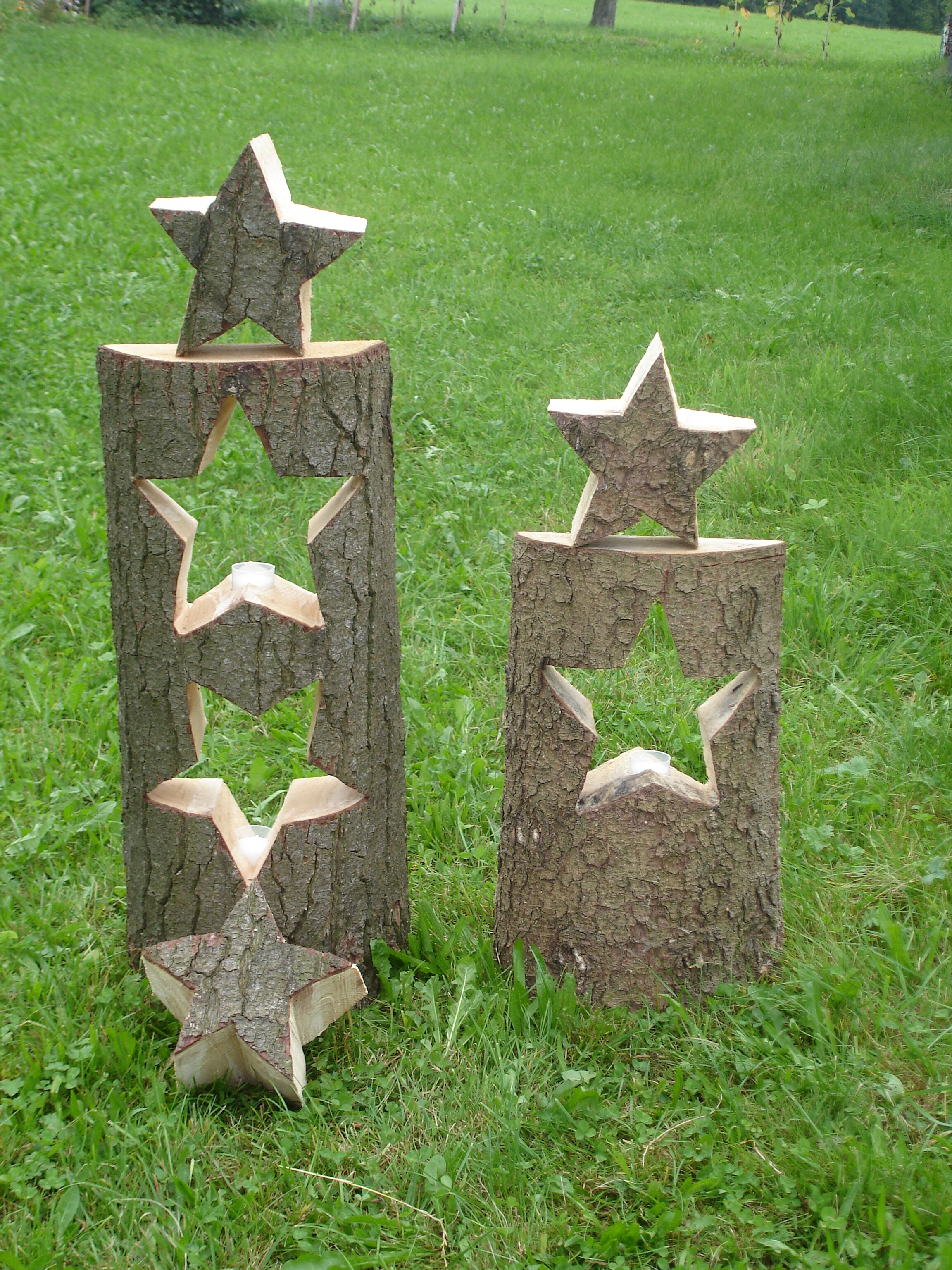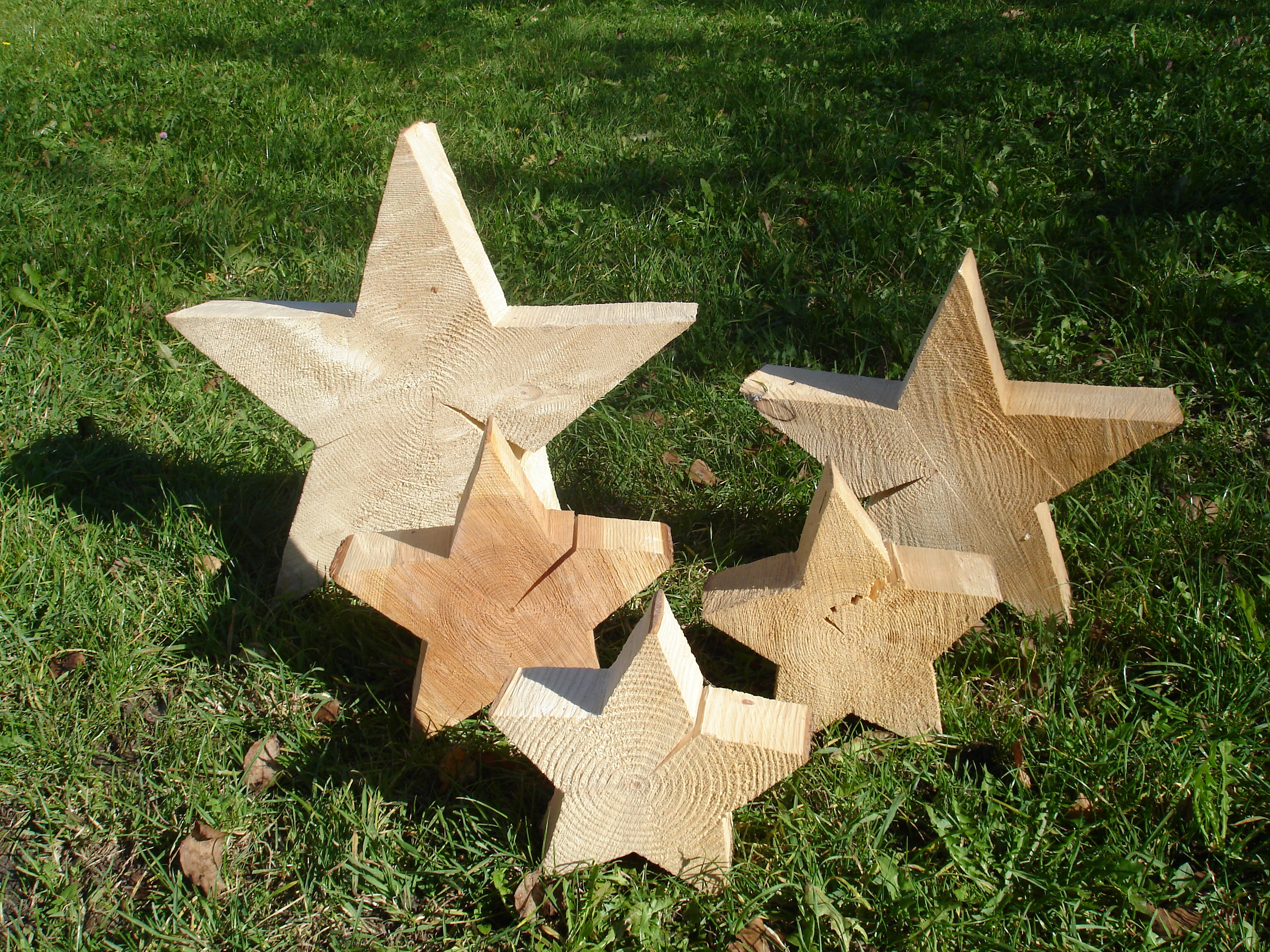 Wir haben Holzsterne von ca. 25 cm bis über 60 cm Höhe. Auf Nachfrage können auch übergrosse Sterne hergestellt werden (bis ca. 1 m hoch)