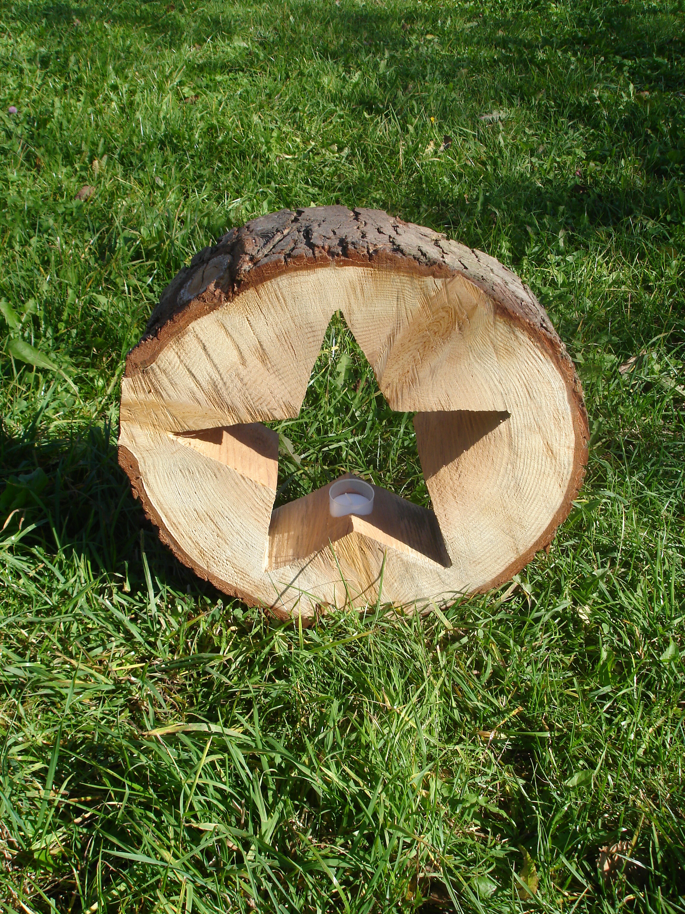 Von einer Holzscheibe wir ein Stern ausgeschnitten. Damit der Stern in der Nacht auch zur Geltung kommt, hat es ein Loch für eine Kerze.